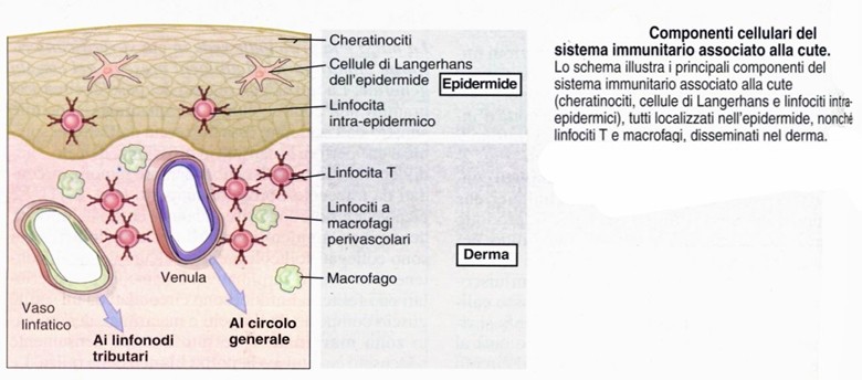 La cute è l’organo più grande dell’organismo e molti antigeni estranei penetrano nell’organismo stesso attraverso essa. Per tale motivo, è presente il tessuto linfoide associato alla cute, composto da linfociti e cellule accessorie, volto ad ottimizzare il riconoscimento degli antigeni ambientali.